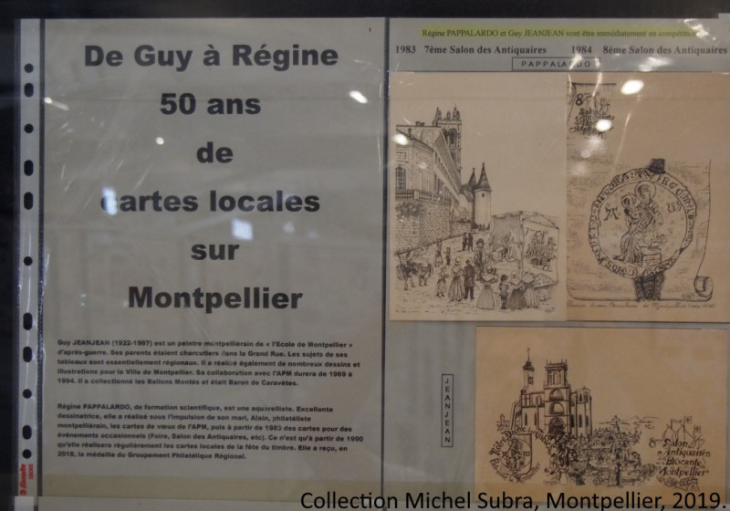 Pour les visiteurs ne connaissant pas ces souvenirs, Michel SUBRA en expose plusieurs en cour d'honneur sous le titre De Guy à Régine, 50 ans de cartes locales sur Montpellier.