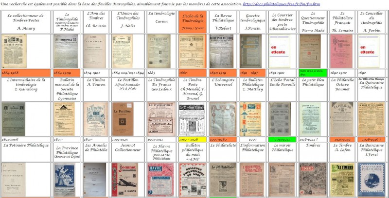 Le site de fond doumentaire philatélique dont le lien est cité ci-dessous, est dédié aux revues et documents philatéliques et marcophiles. Plus de 100 revues sont présentés sur ce site, près de 500 bulletins et revues de France sont référencés dans ce site, la base de données contient plus de 46000 lignes de sommaire, de revue ; à ce jour, plus de 4400 ouvrages francophones concernant la Philatélie, la Marcophilie et l’Histoire de la poste sont référencés (Quelques documents concernant la France peuvent être référencés dans une autre langue que celle de Molière).