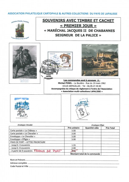 Vous trouverez ci-après les adresses pour télécharger les bons de commande documentés pour l'achat du livre et des produits philatéliques ainsi que d'autres adresses Web pour se documenter sur le logis seigneurial médiéval.