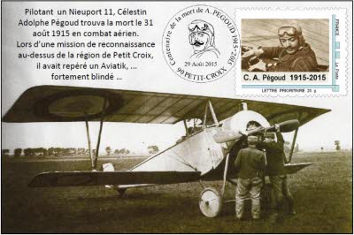 Le samedi 29 août 2015, l’Amicale Philatélique de l’Est - Belfort, en partenariat avec la municipalité de Petit-Croix (Territoire de Belfort), a organisé un bureau postal temporaire dans le cadre des commémorations du centenaire de la disparition de l’aviateur Célestin Adolphe PÉGOUD, abattu au-dessus du village le 31 août 1915.