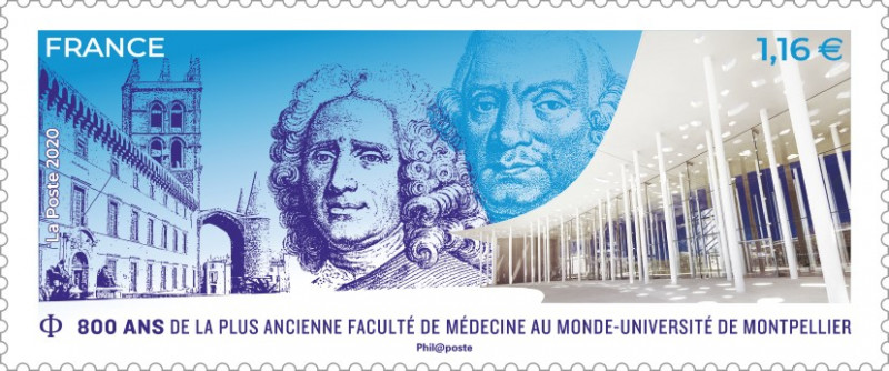 À l'occasion de l'émission du timbre des 800 ans de la Faculté de médecine de Montpellier, Montpellier Notre Ville consacre une page entière sur les timbres de Montpellier.