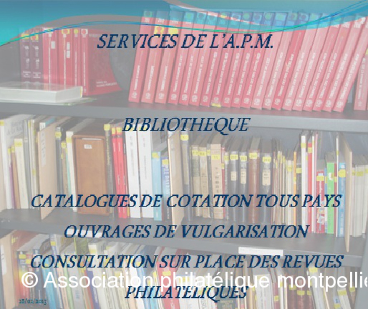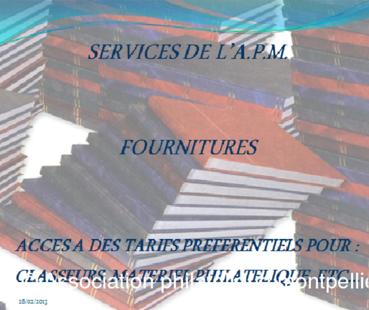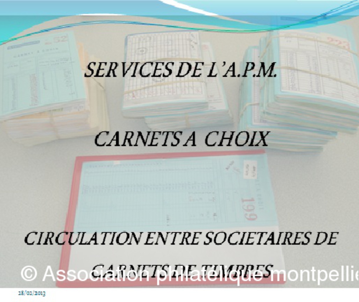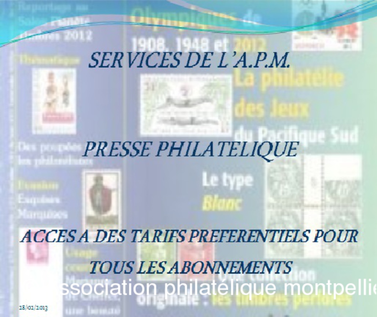 La série de diapositives figurant dans cet album est destinée à présenter l'Association philatélique de Montpellier, précisant tous les services qui peuvent être rendus aux philatélistes en herbe ou confirmés au niveau des différents aspects de leurs collections