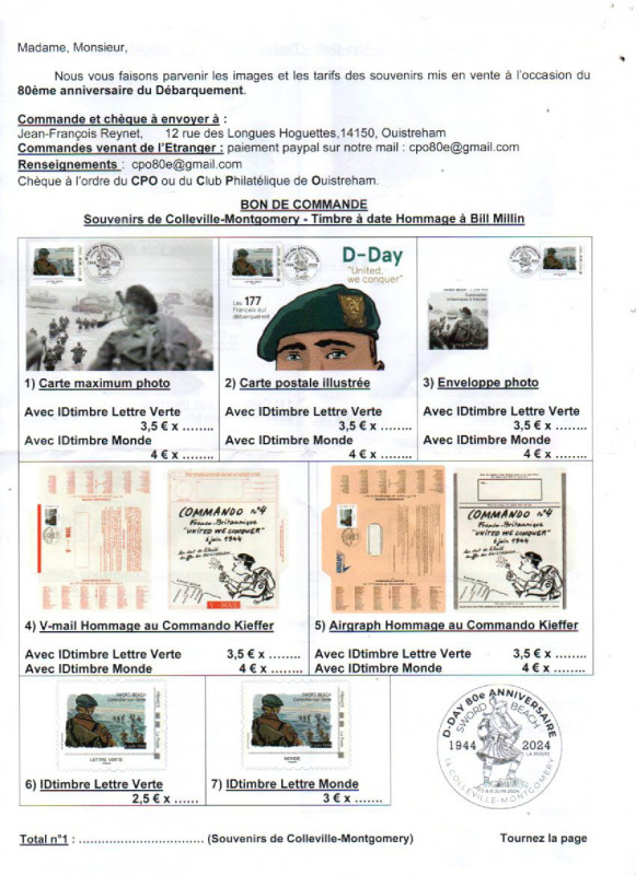 Le 6 juin, La Poste émet un bloc sur les 80 ans du Débarquement avec plusieurs lieux de Premier Jour, dont Bénouville, ville du Pegasus Bridge, organisé par nos amis de PHILAPOSTEL Basse-Normandie (bulletin de commande des souvenirs diffusé le 28 mai).