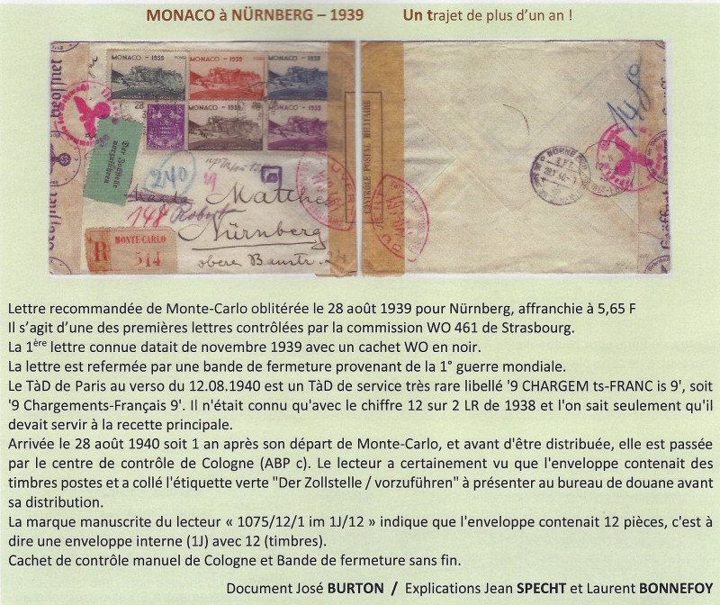 LES TRIBULATIONS D'UN COURRIER ENTRE MONACO ET NURENBERG EN 1939